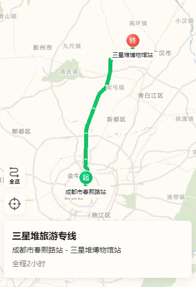 路线起讫点:成都市春熙路——三星堆博物馆
