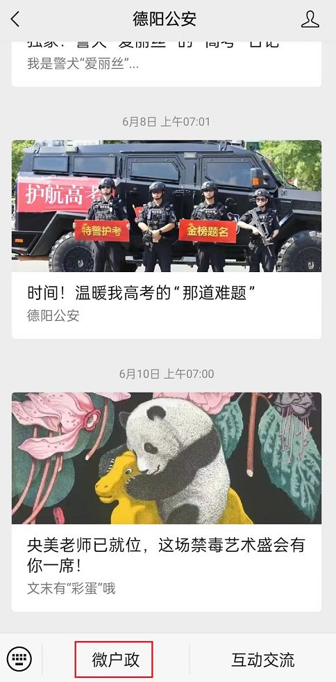 1、微信关注“德阳公安”微信公众号,