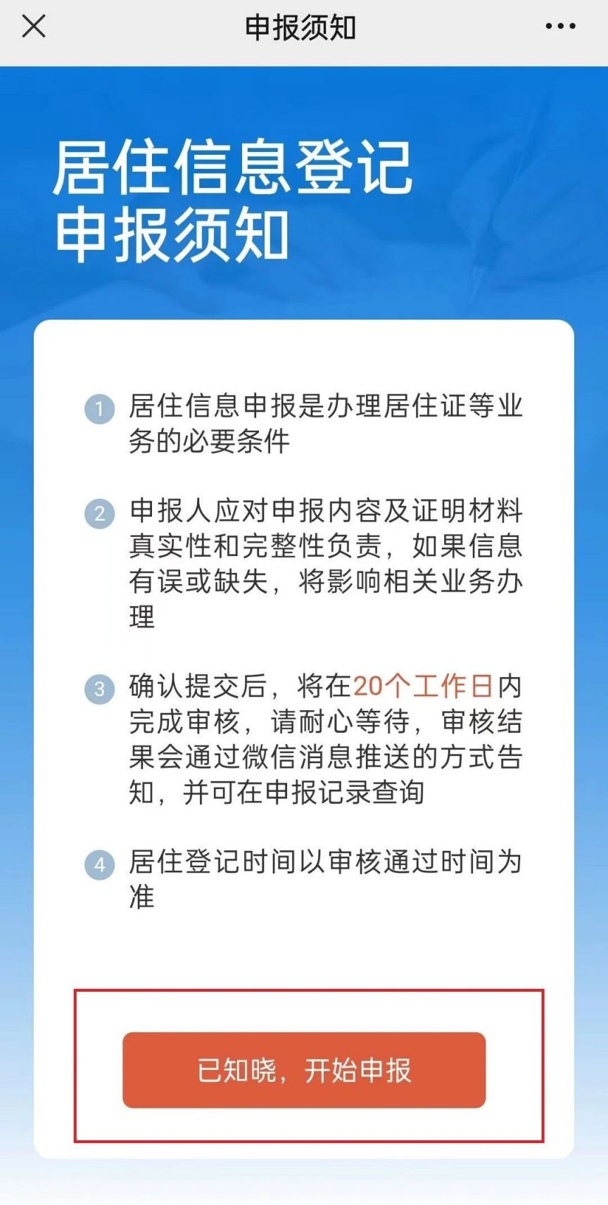5.点击个人居住登记申报,请仔细阅读申报须知并确认。