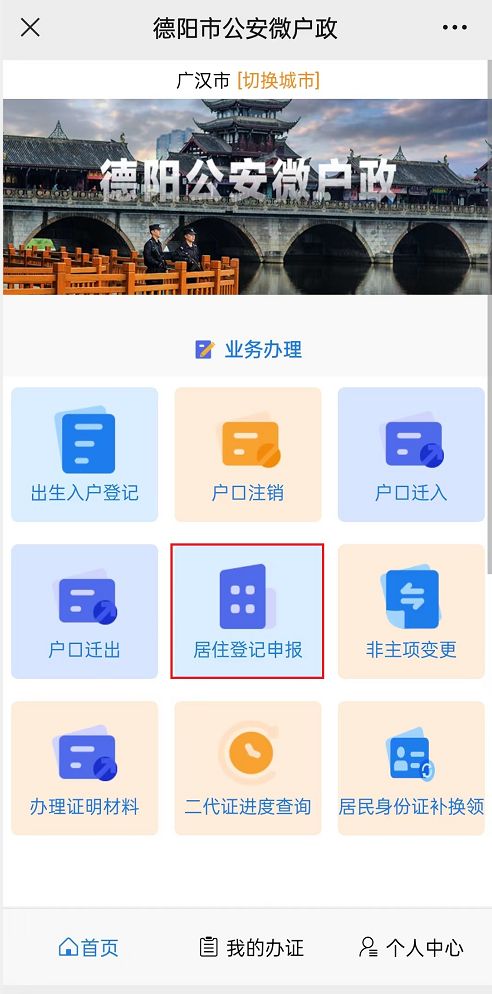 德阳市公安局为持续深化行政管理服务改革,开通了居住信息网上申报渠道,群众通过网上申报审核的,可不再前往居住地派出所或社区警务室进行居住信息现场申报登记。(申报成功后,六个月后还是要到居住地派出所领取居住证!)